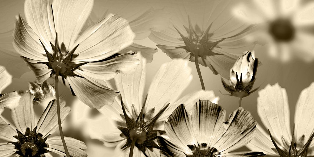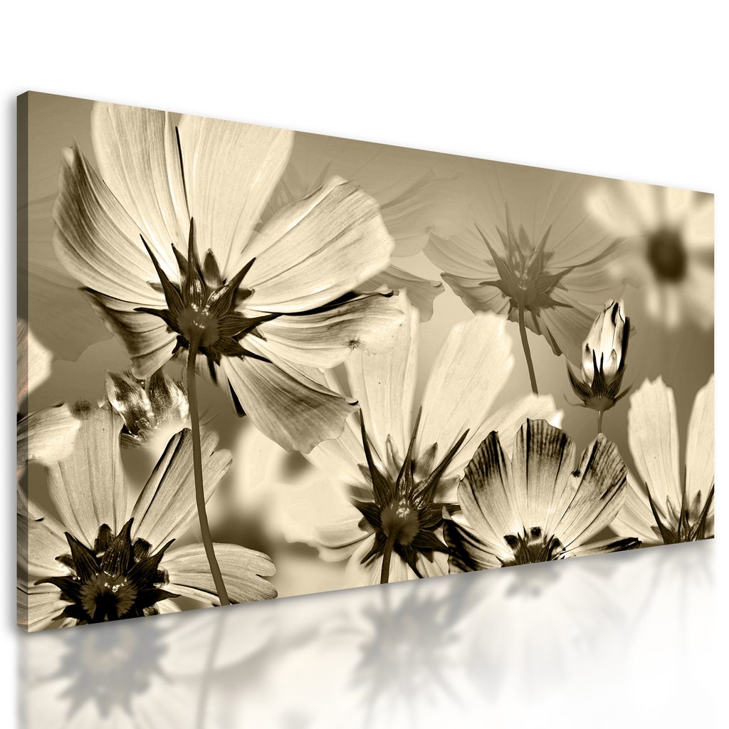 Obraz záhrada plná rozkvitnutých kvetov v sépiovom prevedení