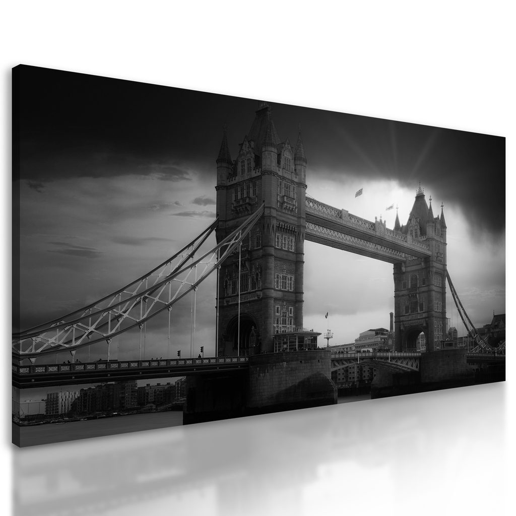 Obraz západ slnka nad čarovným Londýnom v čiernobielom prevedení