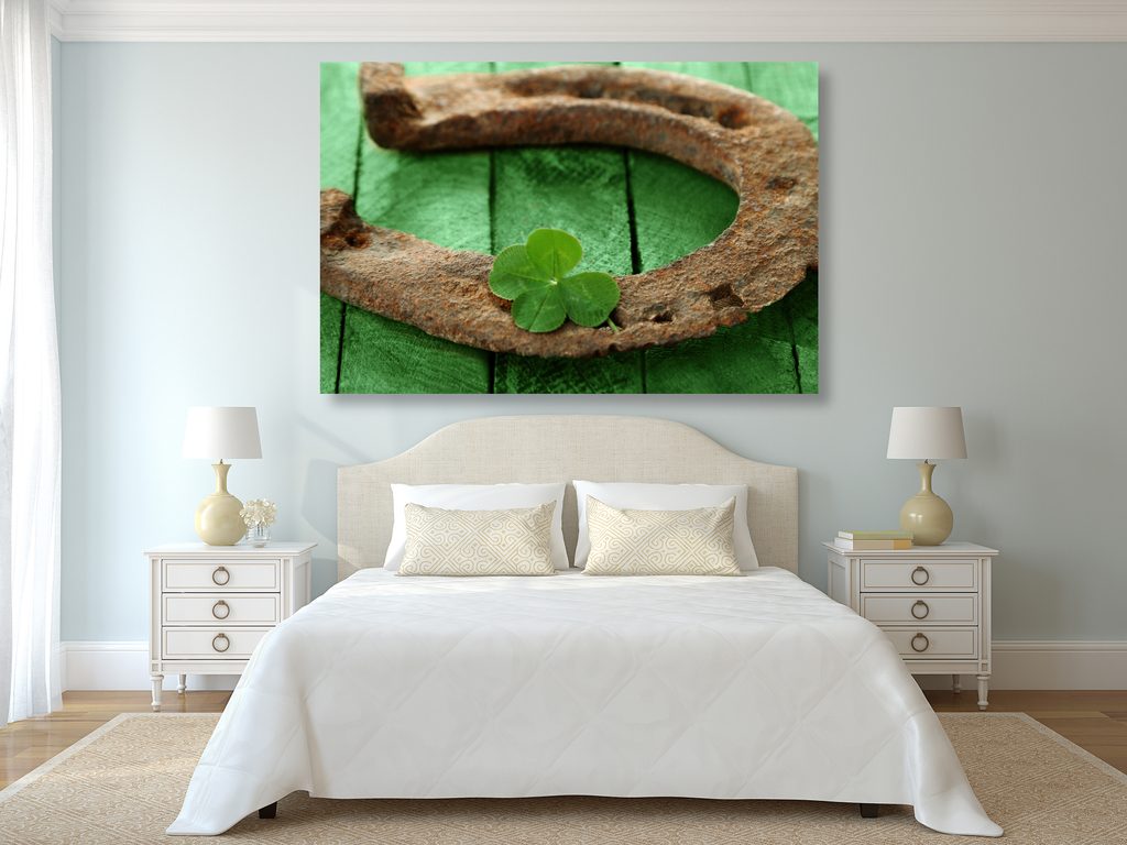 Obraz zátišie tvorené podkovou a štvorlístkom