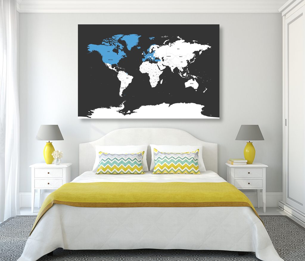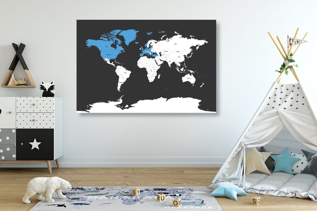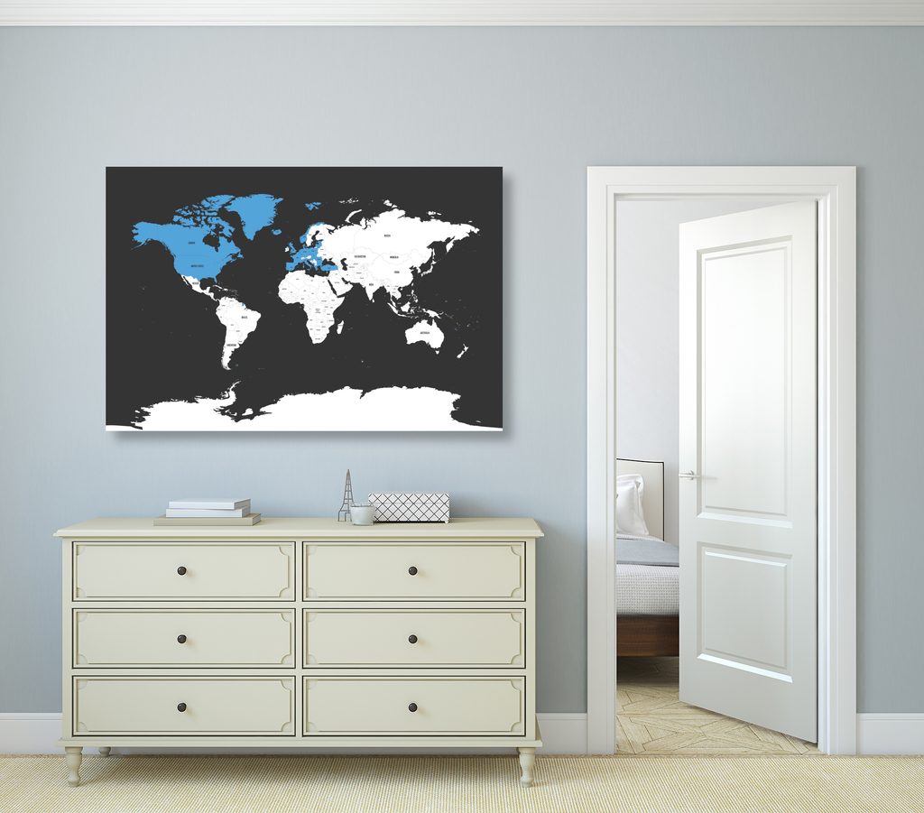 Obraz na korku moderná mapa sveta v čiernobielom prevedení