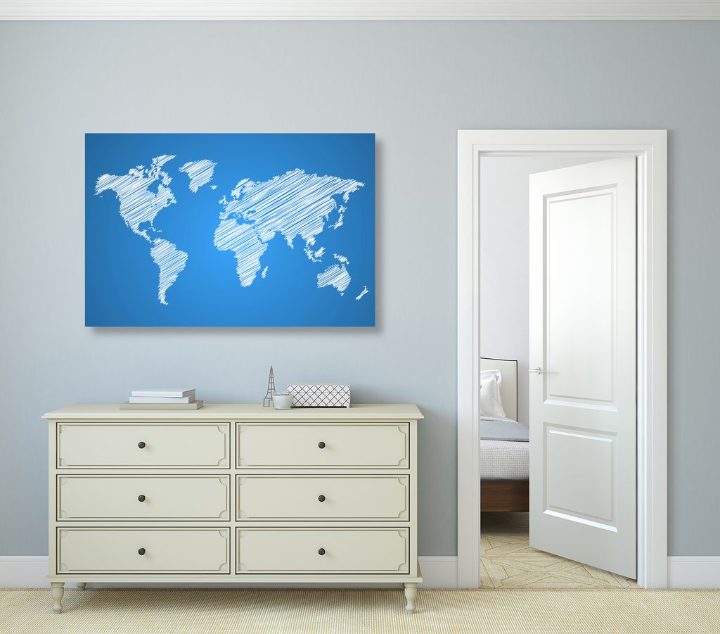 Obraz zaujímavá mapa na modrom pozadí