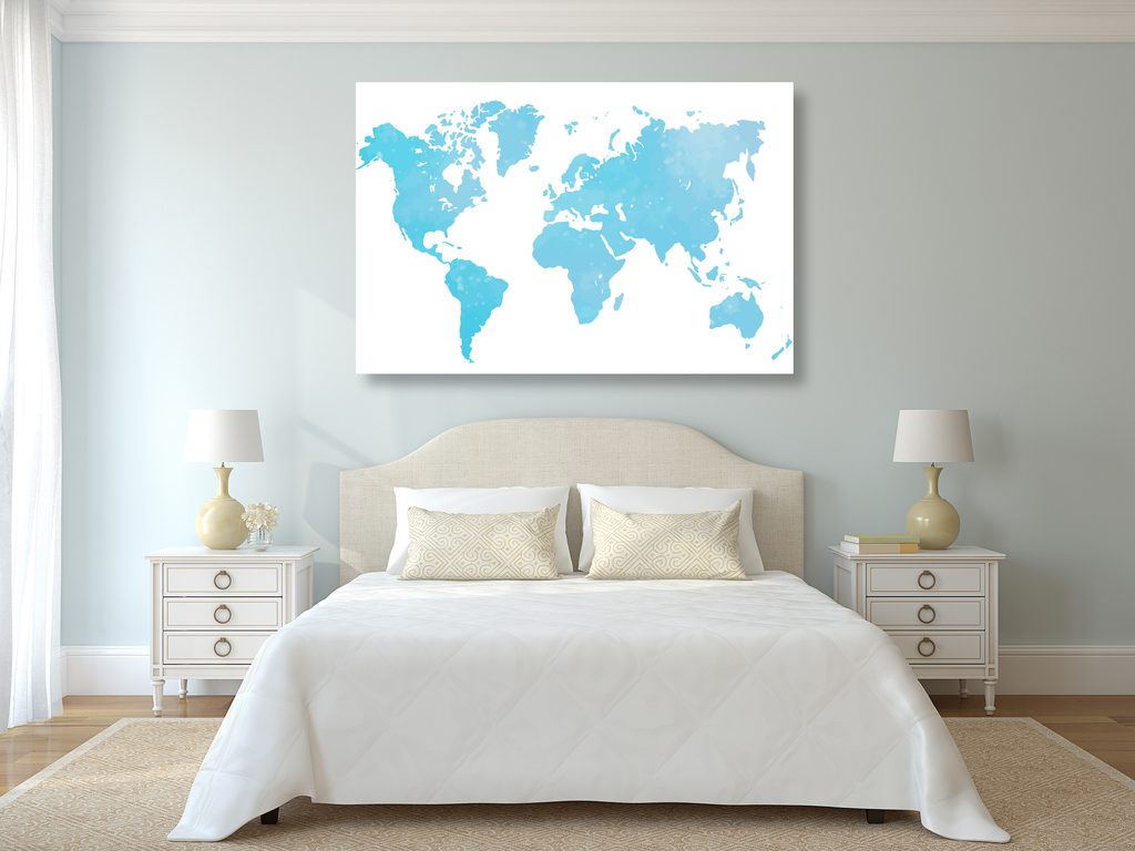 Obraz zaujímavá mapa sveta v modrom prevedení