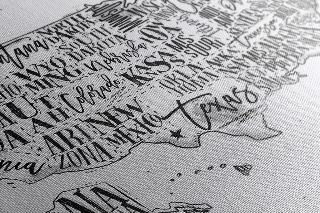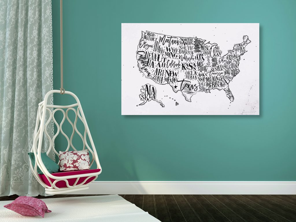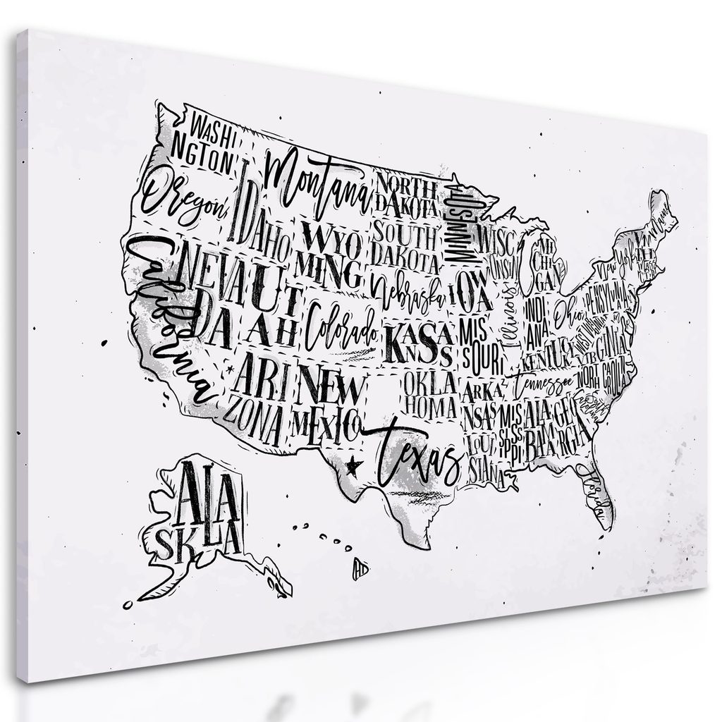 Obraz zaujímavá mapa USA v čiernobielom prevedení