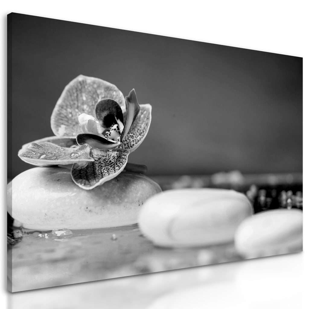 Obraz zaujímavé biele Zen kamene v čiernobielom prevedení