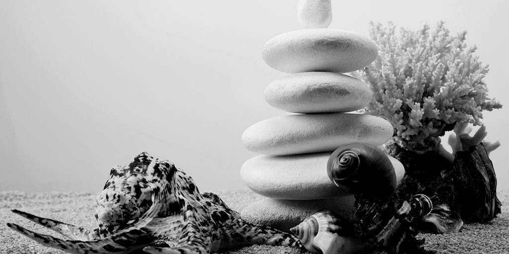 Obraz zen kamene a dary mora v čiernobielom prevedení