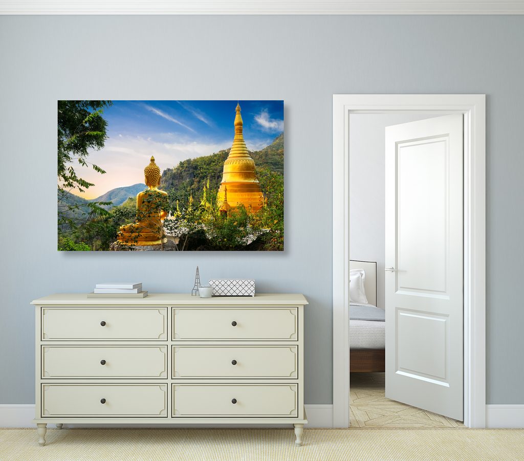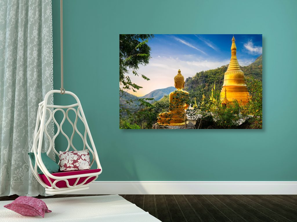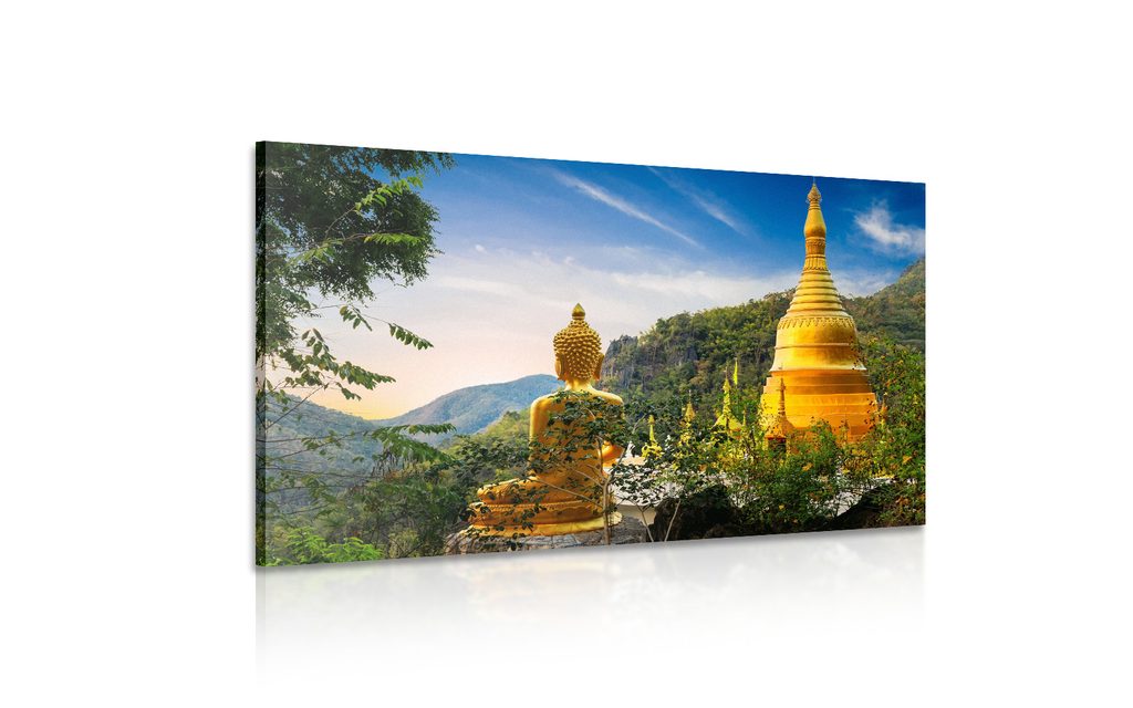Obraz zlatý Budha a krásy prírody
