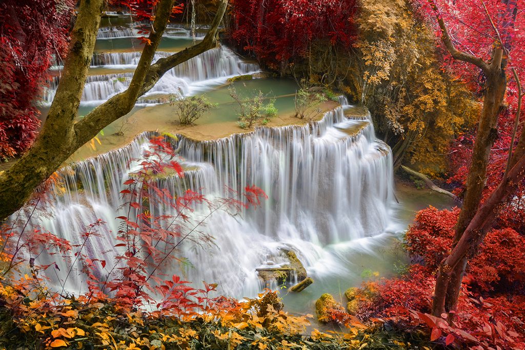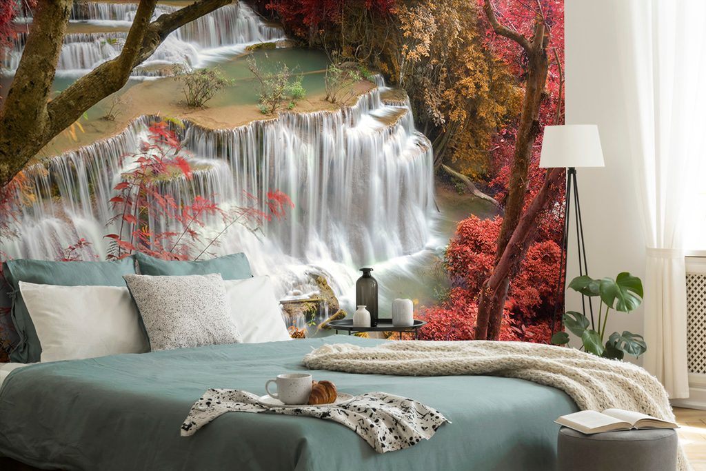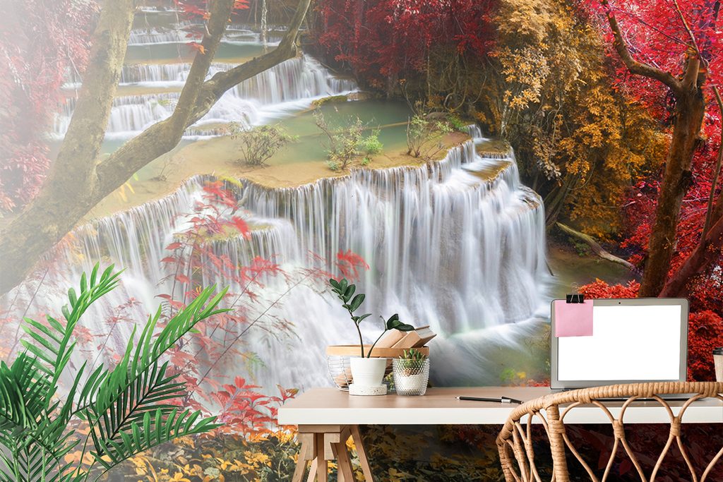 Očarujúca samolepiaca fototapeta vodopád uprostred lesa