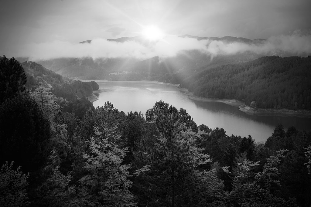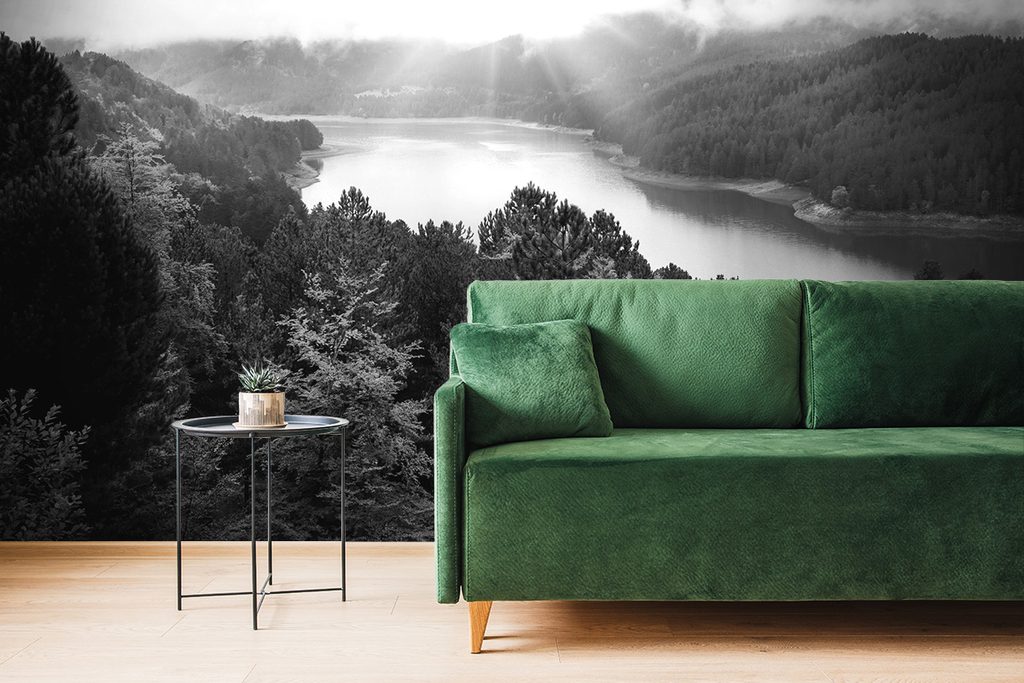 Okúzľujúca samolepiaca fototapeta krása rieky v čiernobielom prevedení