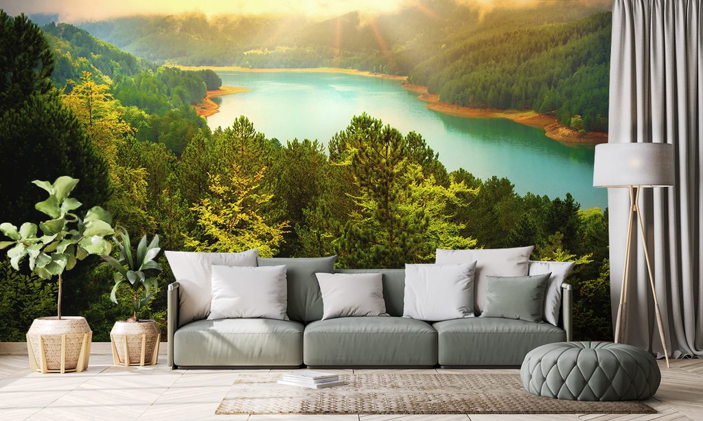 Okúzľujúca samolepiaca fototapeta krása tyrkysovej rieky