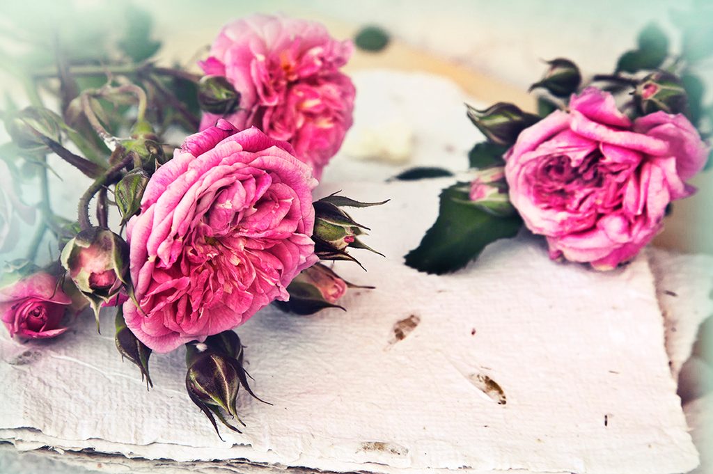 Okúzľujúca samolepiaca fototapeta ruže na pergamene