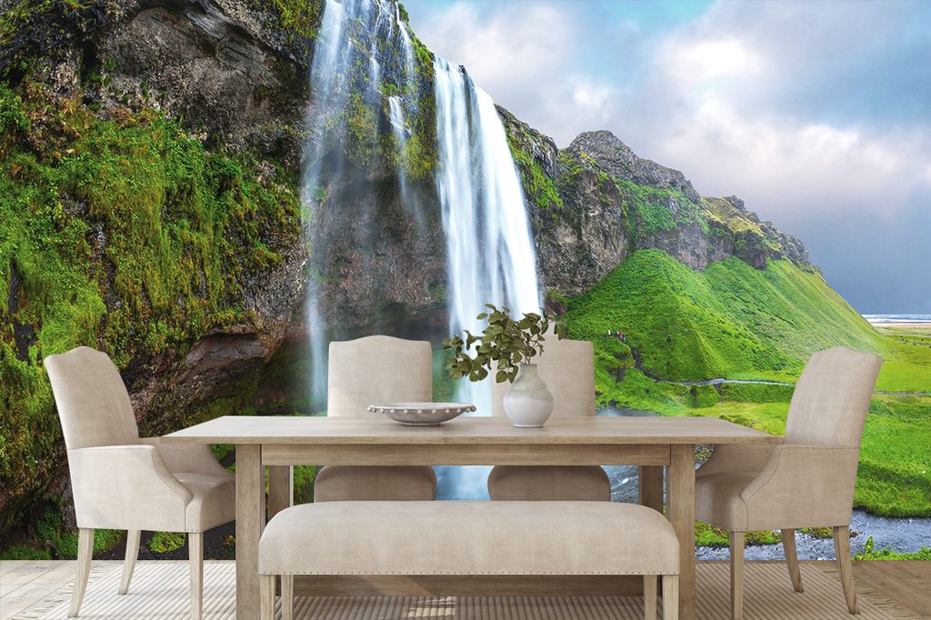 Okúzľujúca samolepiaca fototapeta vodopád na Islande