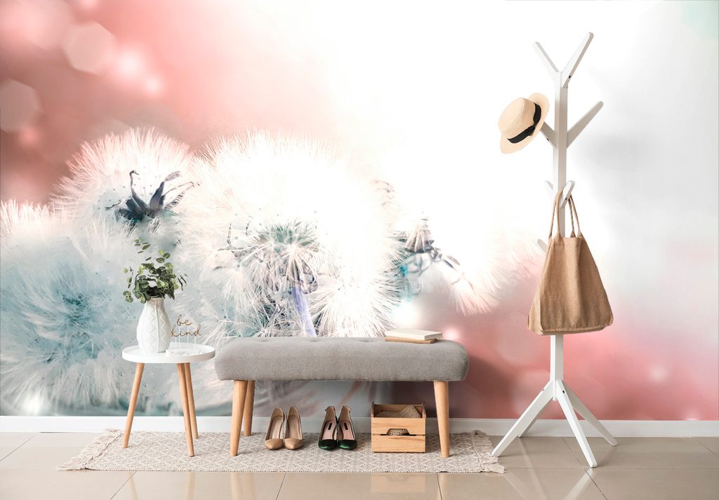 Okúzľujúca samolepiaca tapeta pohár s púpavami