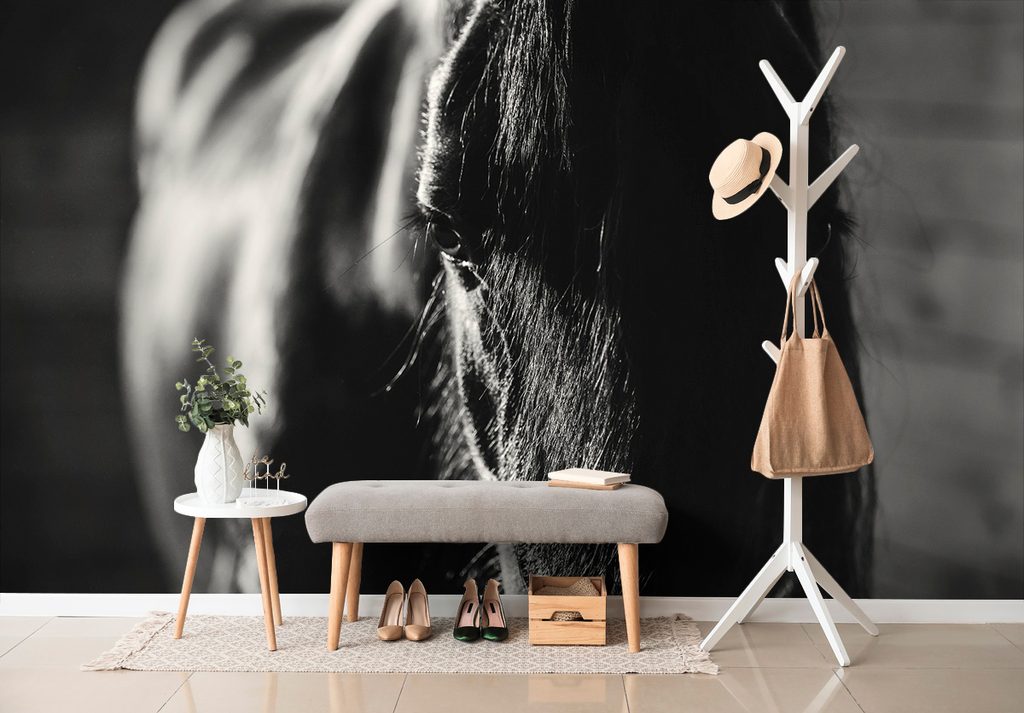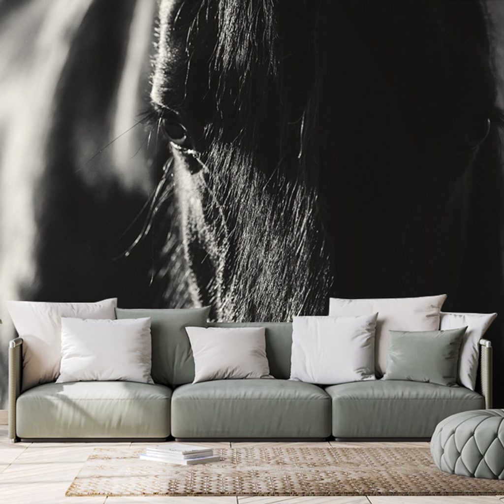 Originálna čiernobiela samolepiaca fototapeta vznešený kôň