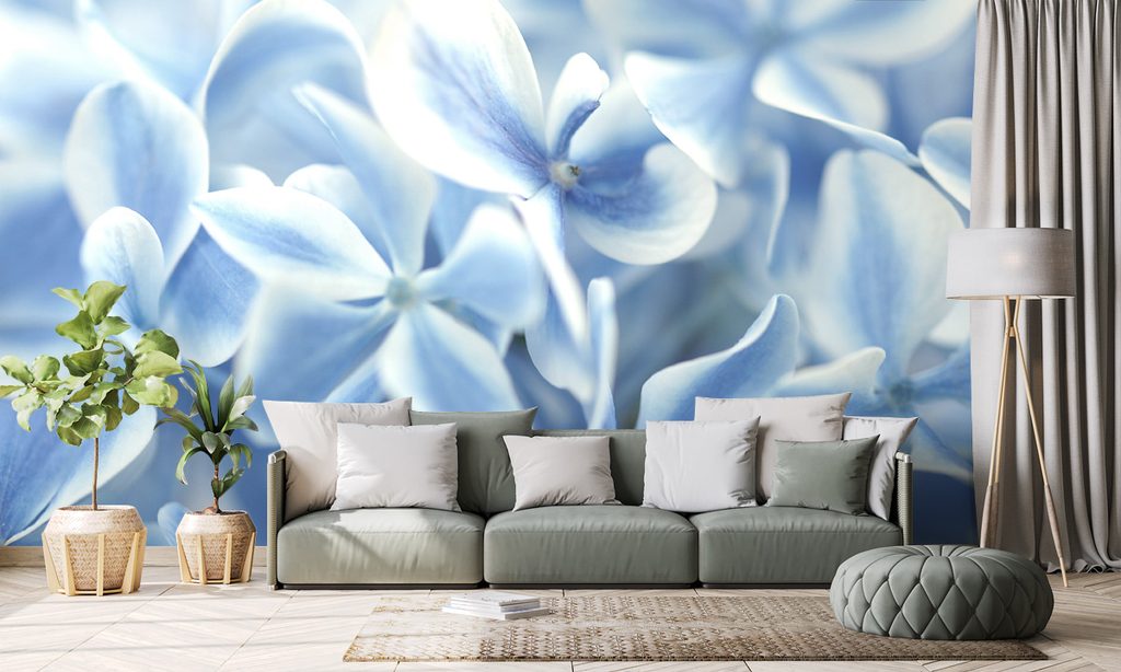 Originálna samolepiaca fototapeta belasé kvety hortenzie