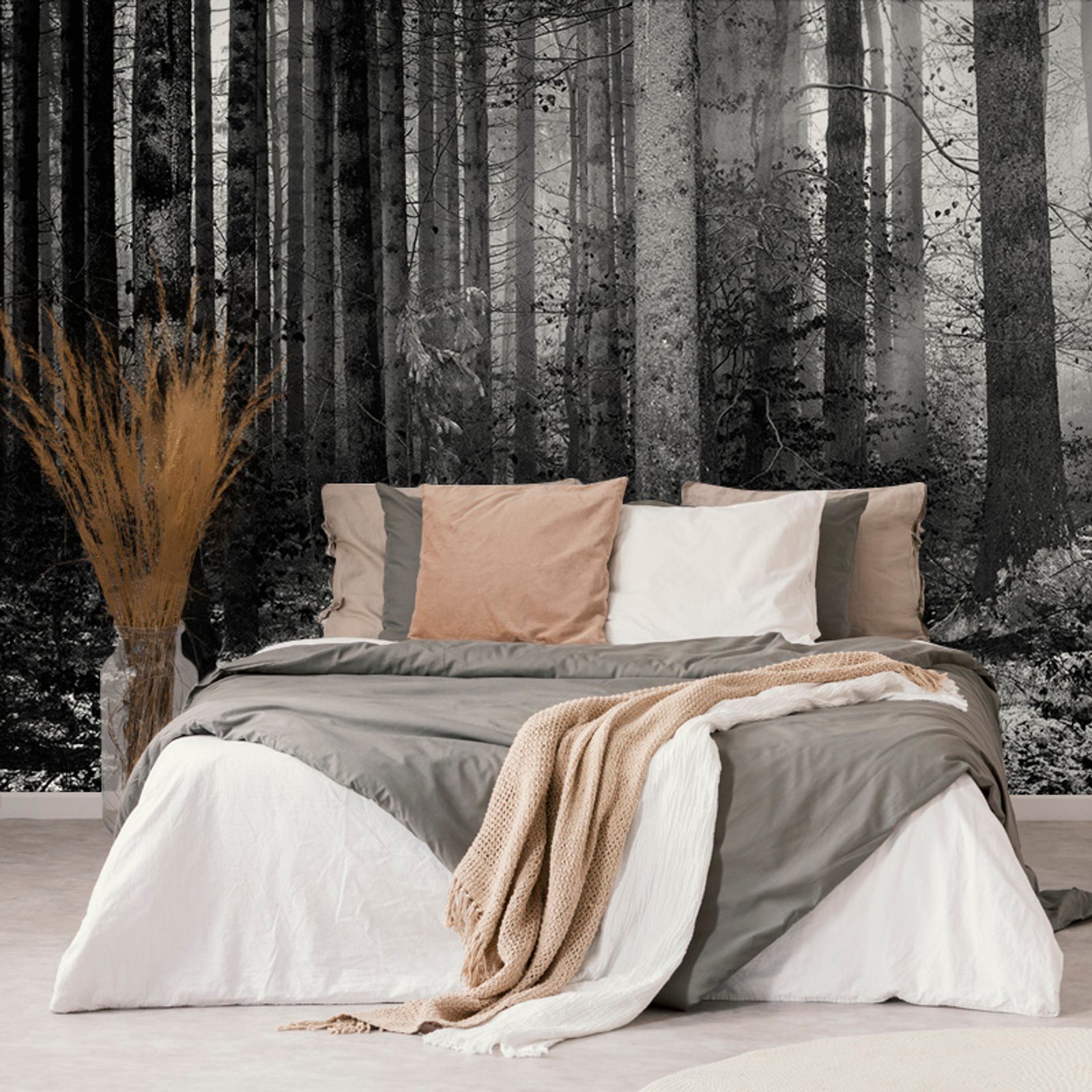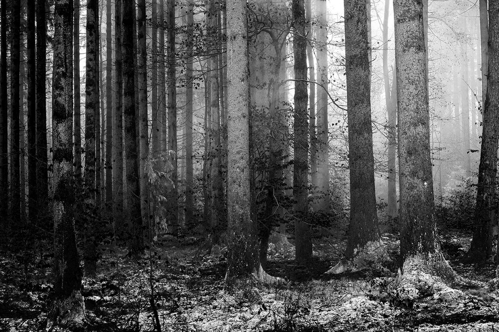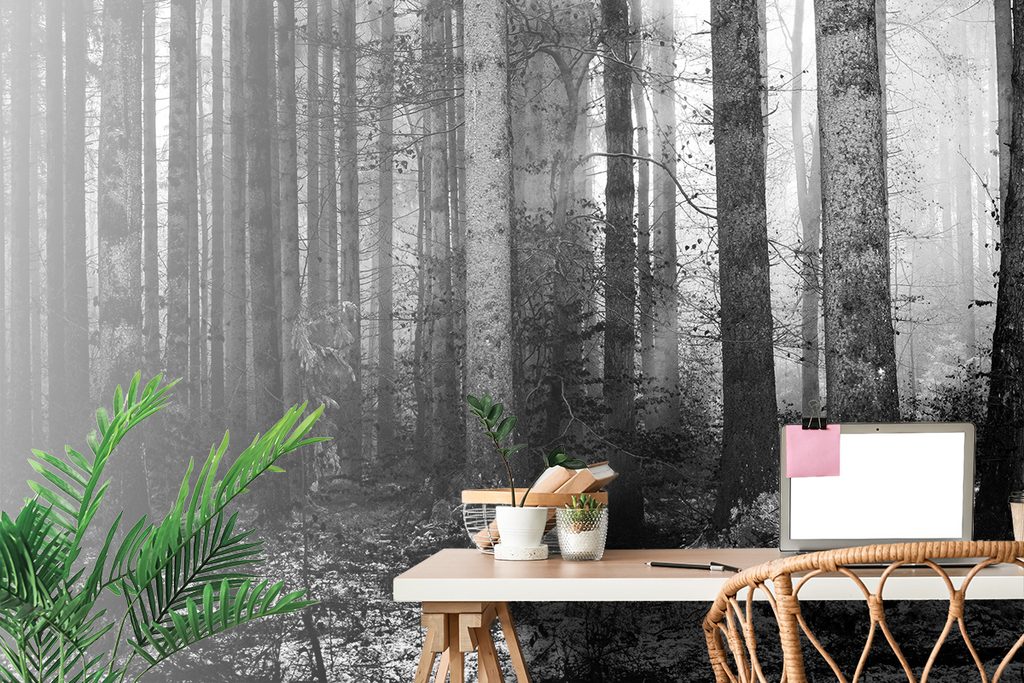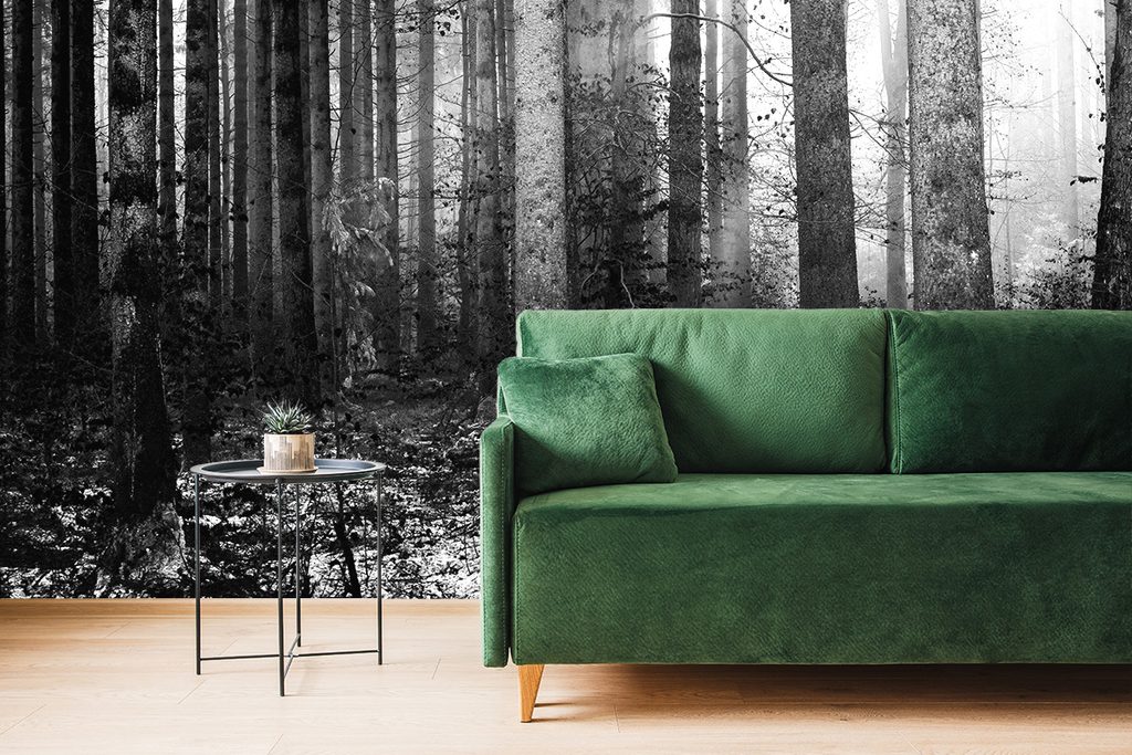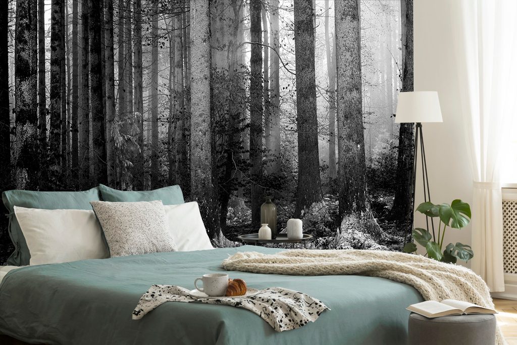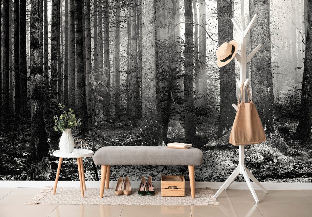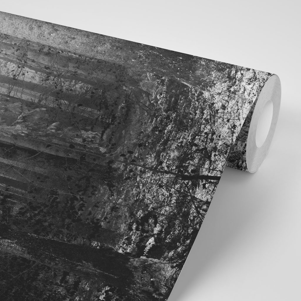 Originálna samolepiaca fototapeta čiernobiele zákutie lesa