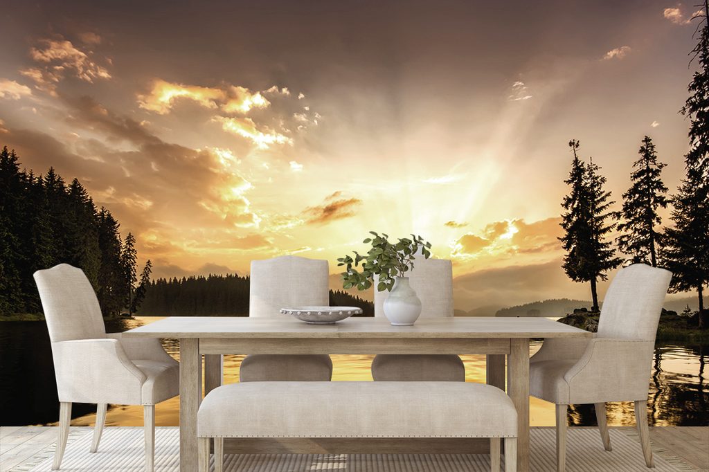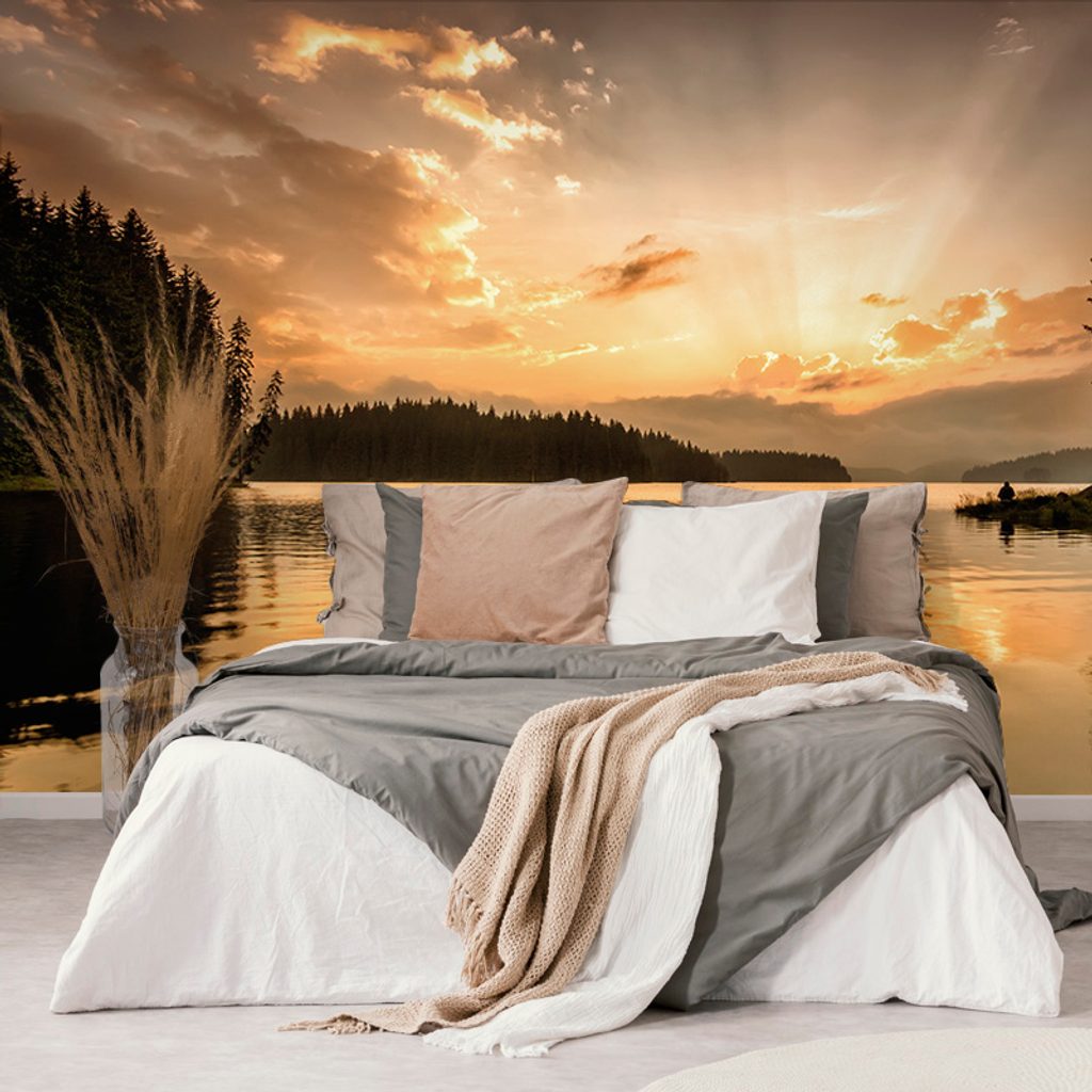 Originálna samolepiaca fototapeta jazero v objatí hôr
