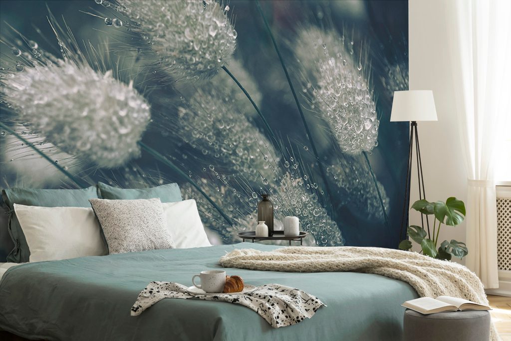 Originálna samolepiaca fototapeta tráva s kvapkami dažďa