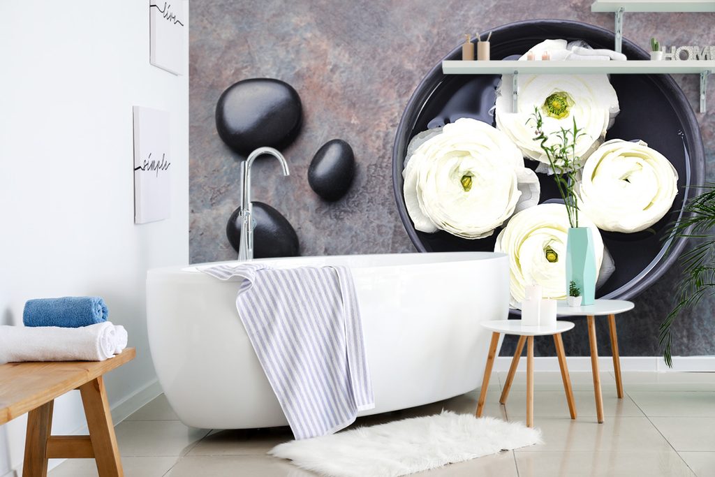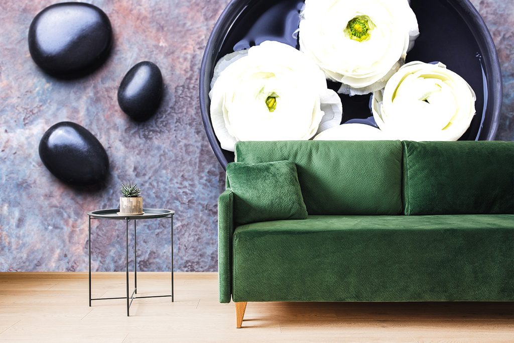 Originálna samolepiaca fototapeta zátišie zen kameňov s kvetmi
