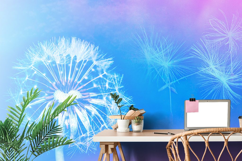 Originálna samolepiaca tapeta púpava s modrým pozadím