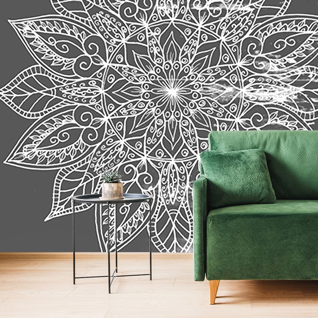 Samolepiaca tapeta nádherná Mandala v čiernobielom prevedení