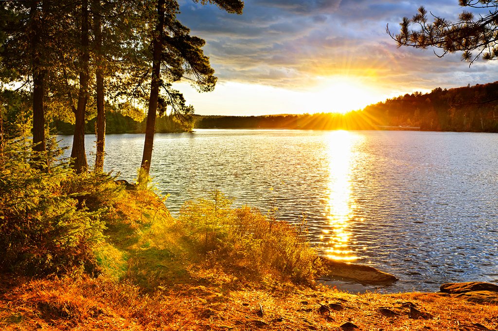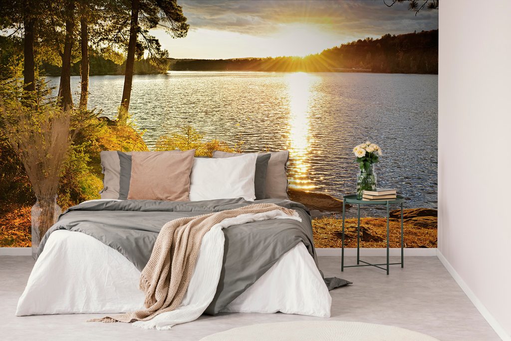 Samolepiaca fototapeta čaro zapadajúceho slnka pri jazere
