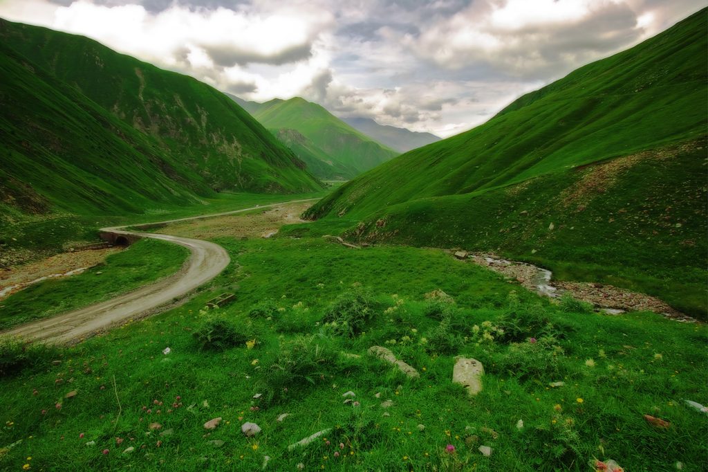 Samolepiaca fototapeta cesta uprostred zelených kopcov
