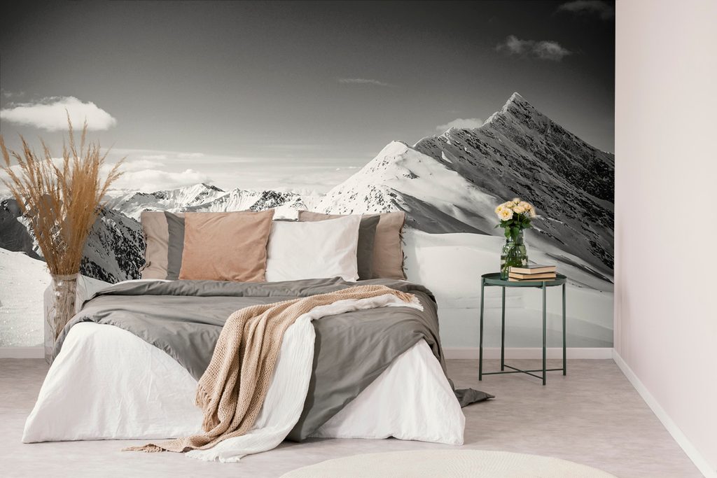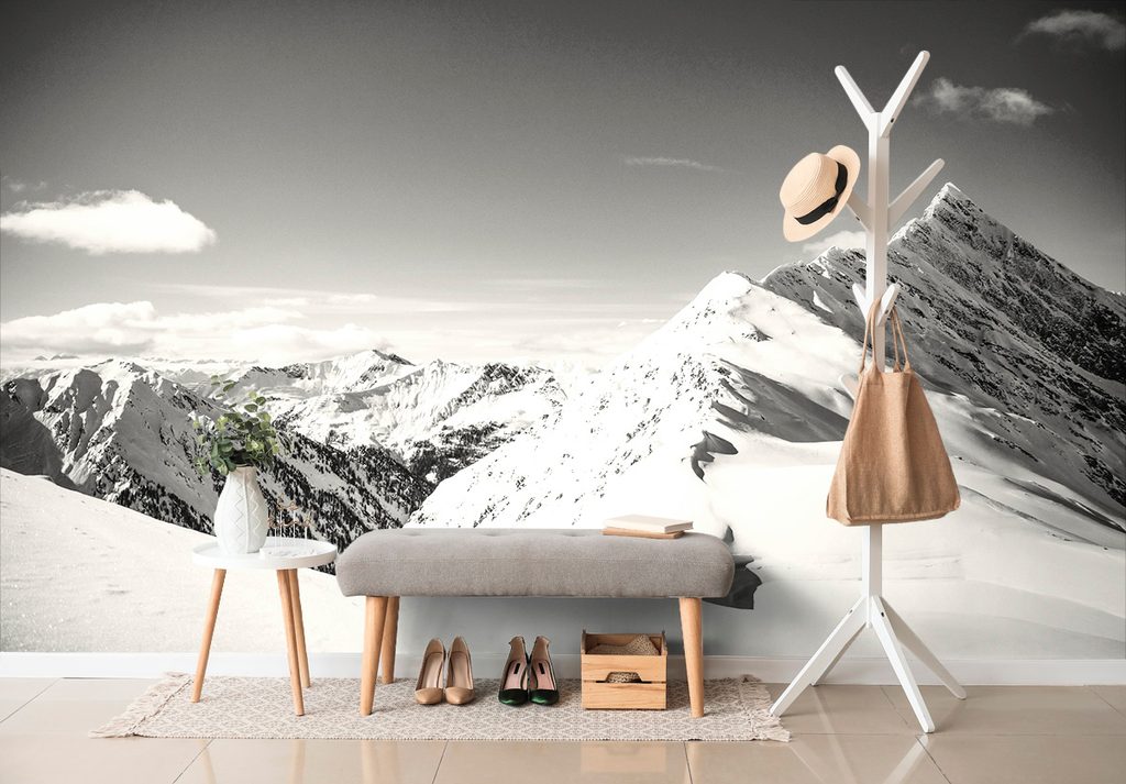 Samolepiaca fototapeta čiernobiele kopce pokryté snehom