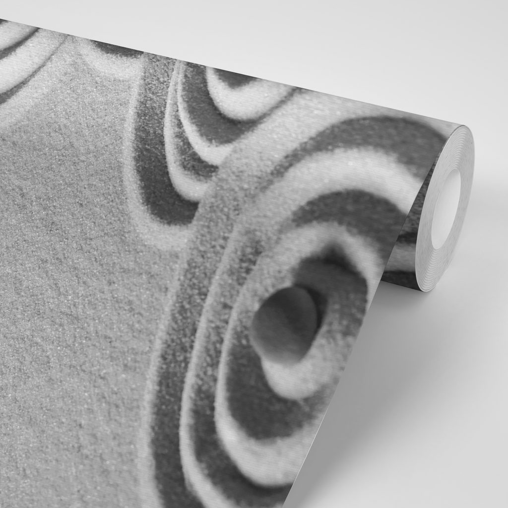 Samolepiaca fototapeta čiernobiele piesočnaté kruhy so zen kameňmi