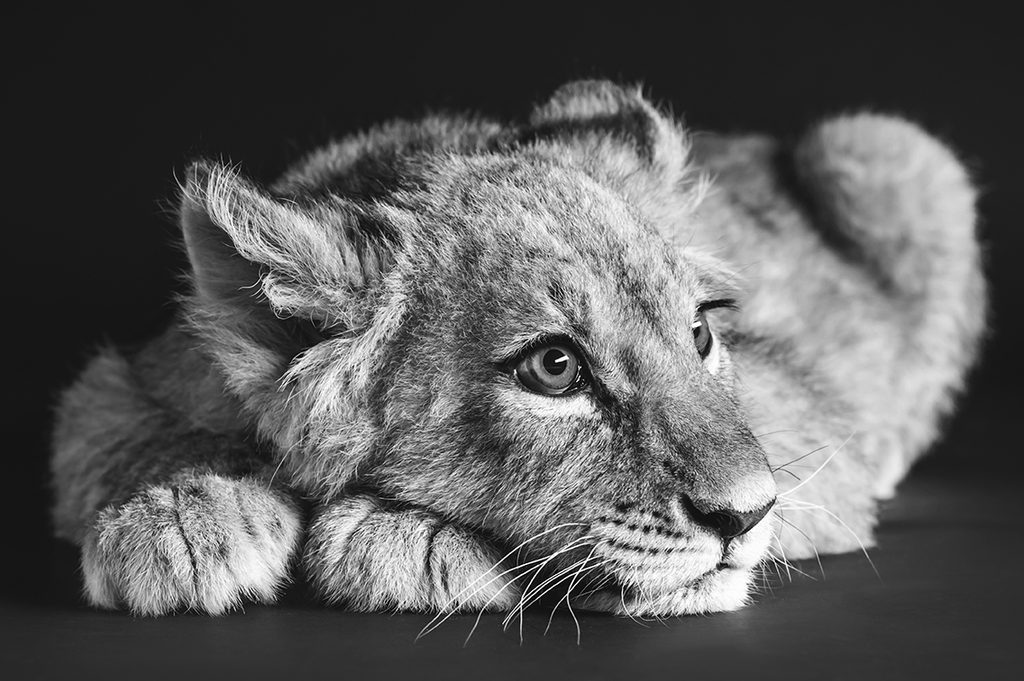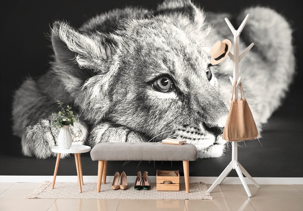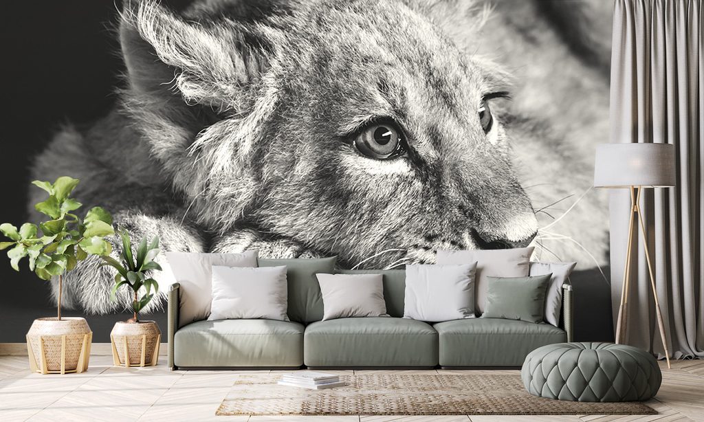 Samolepiaca fototapeta čiernobiele roztomilé levíča