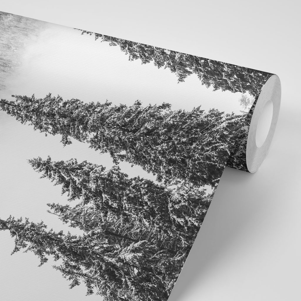 Samolepiaca fototapeta čiernobiele stromy pokryté čerstvým snehom