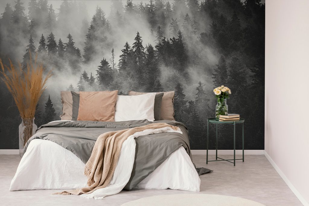 Samolepiaca fototapeta čiernobiele stromy zahalené do hmly