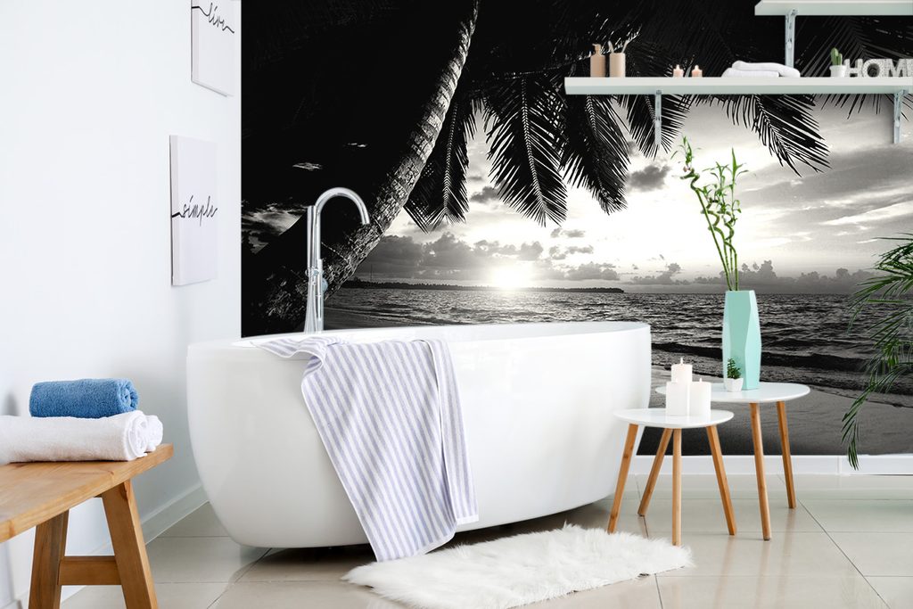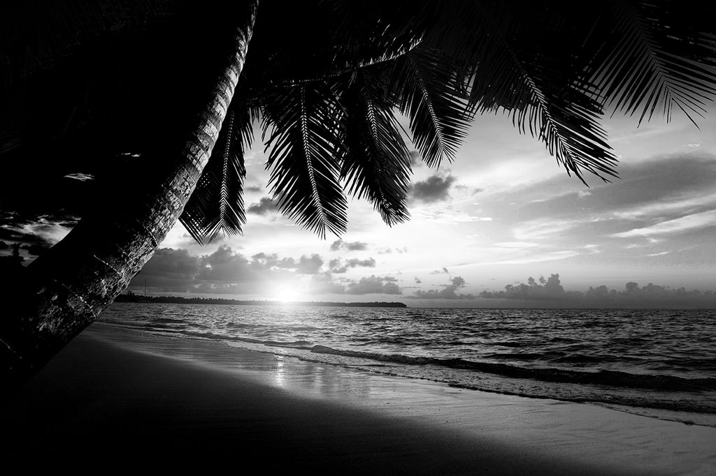 Samolepiaca fototapeta čiernobiely východ slnka na pláži v Karibiku