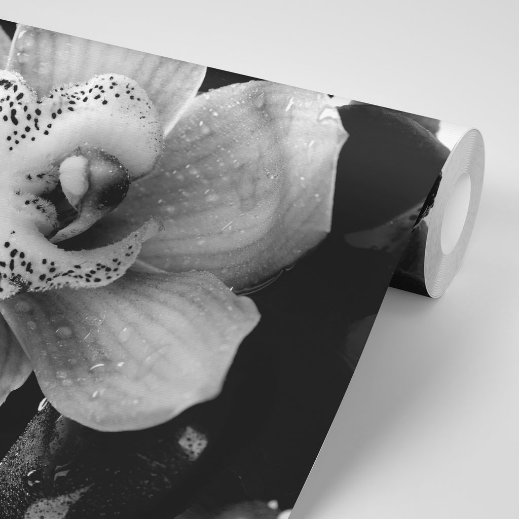 Samolepiaca fototapeta detail tropickej orchidey v čiernobielom prevedení