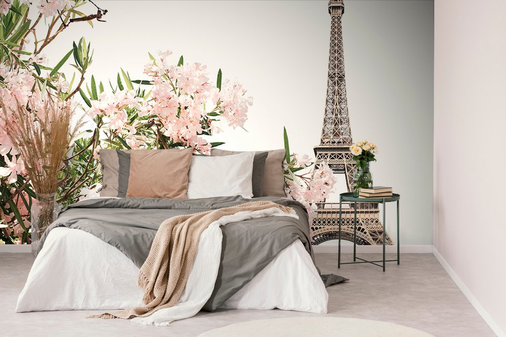 Samolepiaca fototapeta Eiffelova veža s romantickými kvetmi