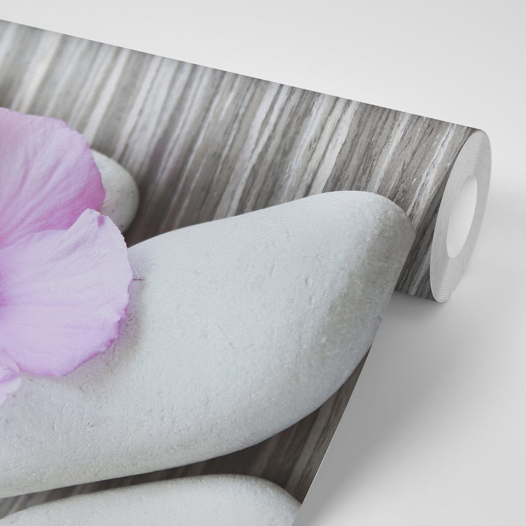 Samolepiaca fototapeta harmónia kameňov s ružovým kvetom