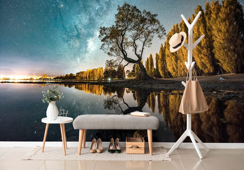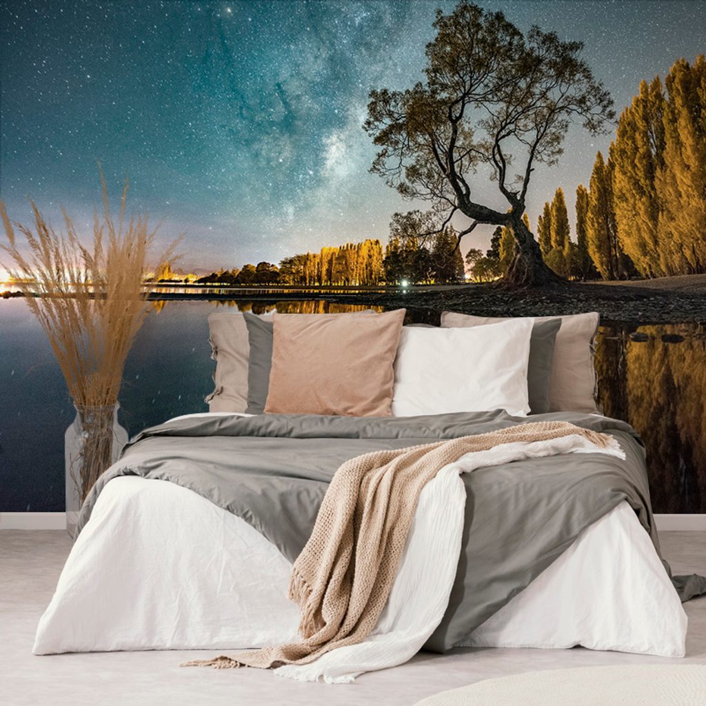 Samolepiaca fototapeta hviezdna obloha nad jazerom