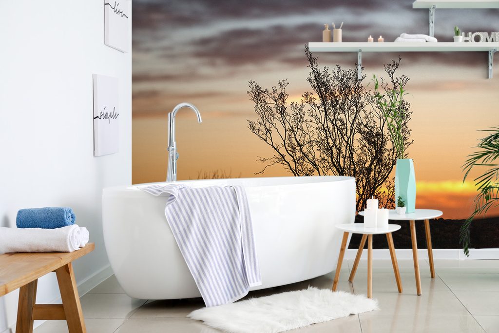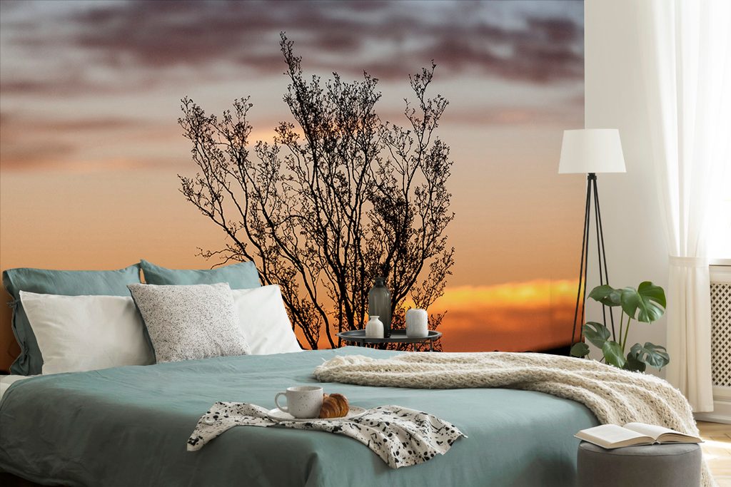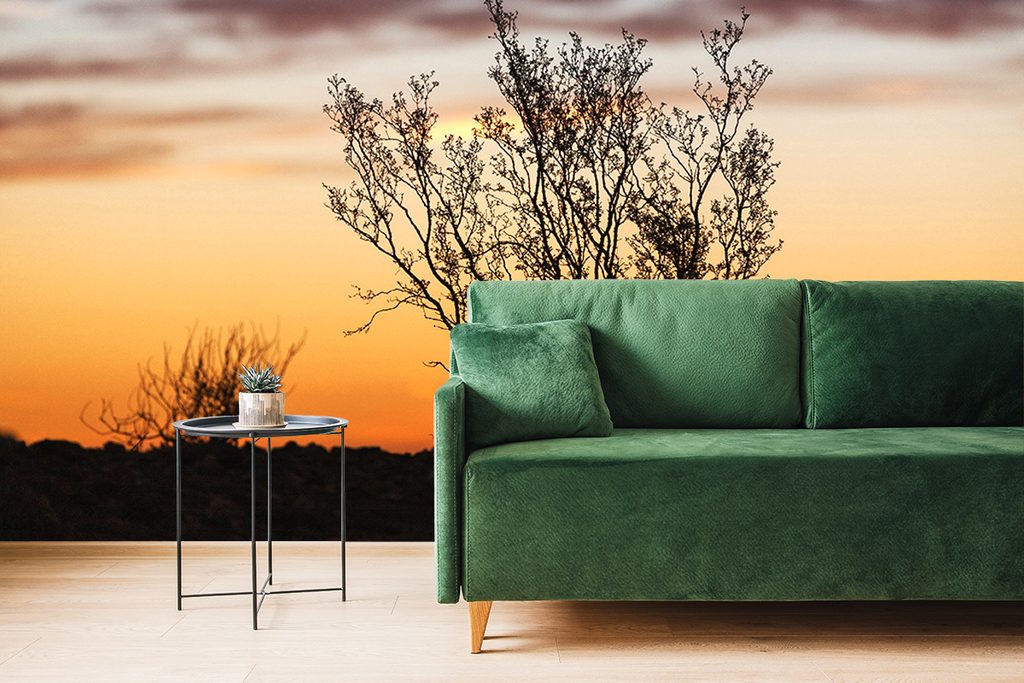 Samolepiaca fototapeta krík pri západe slnka
