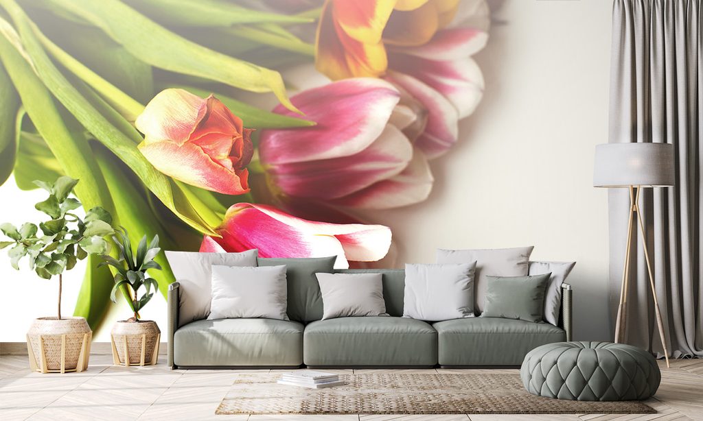 Samolepiaca tapeta krásne tulipány v akvarelovom prevedení