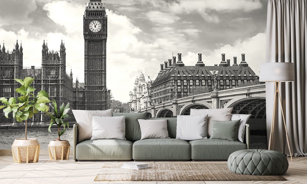 Samolepiaca fototapeta londýnska Elizabeth Tower v čiernobielom prevedení