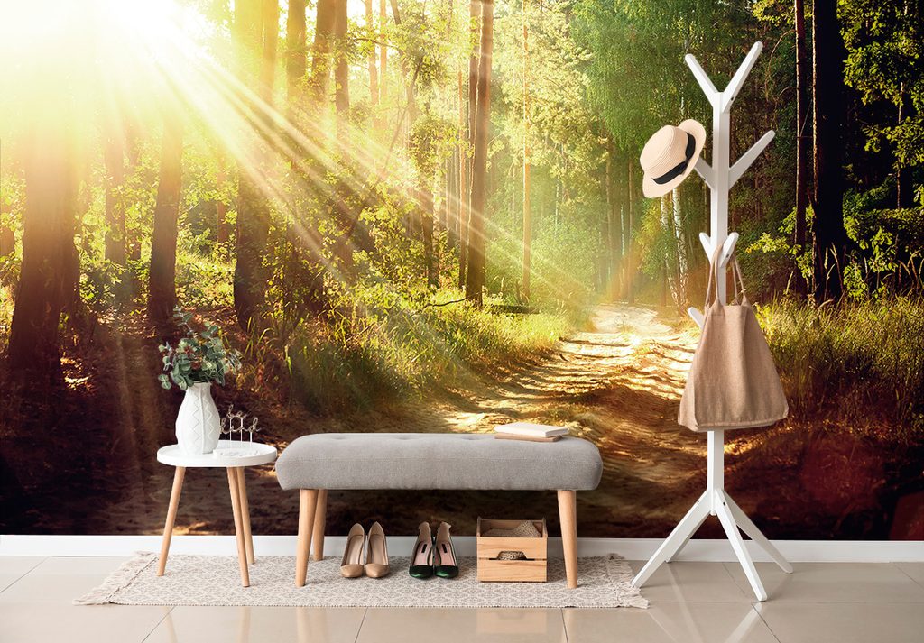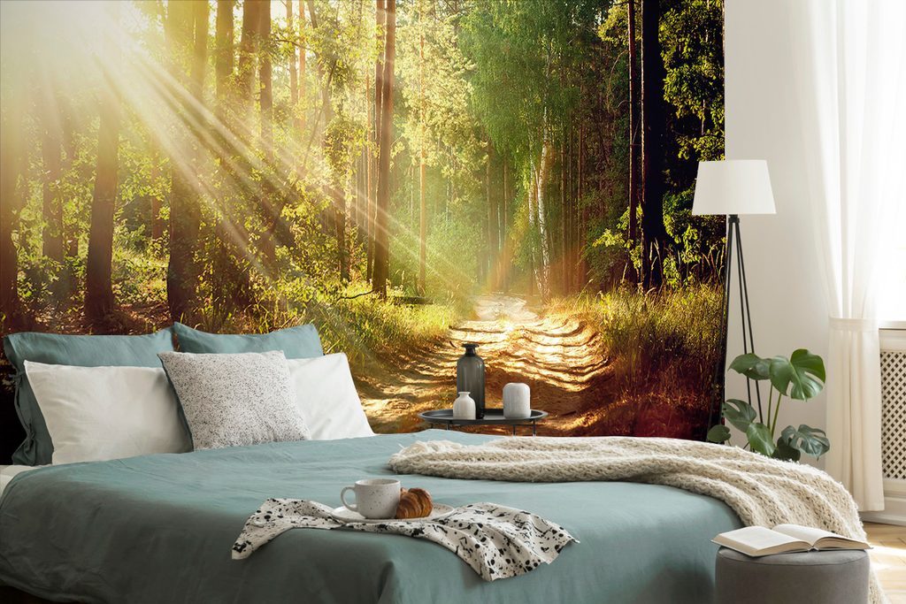Samolepiaca fototapeta lúče slnka medzi stromami