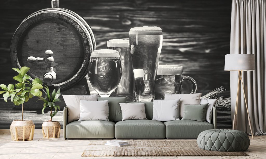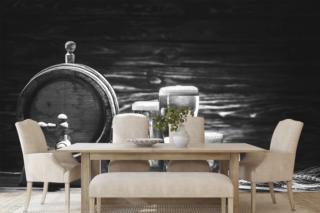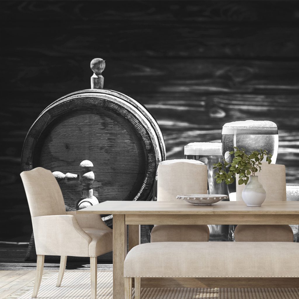 Samolepiaca fototapeta pivo z pivného súdka v čiernobielom prevedení