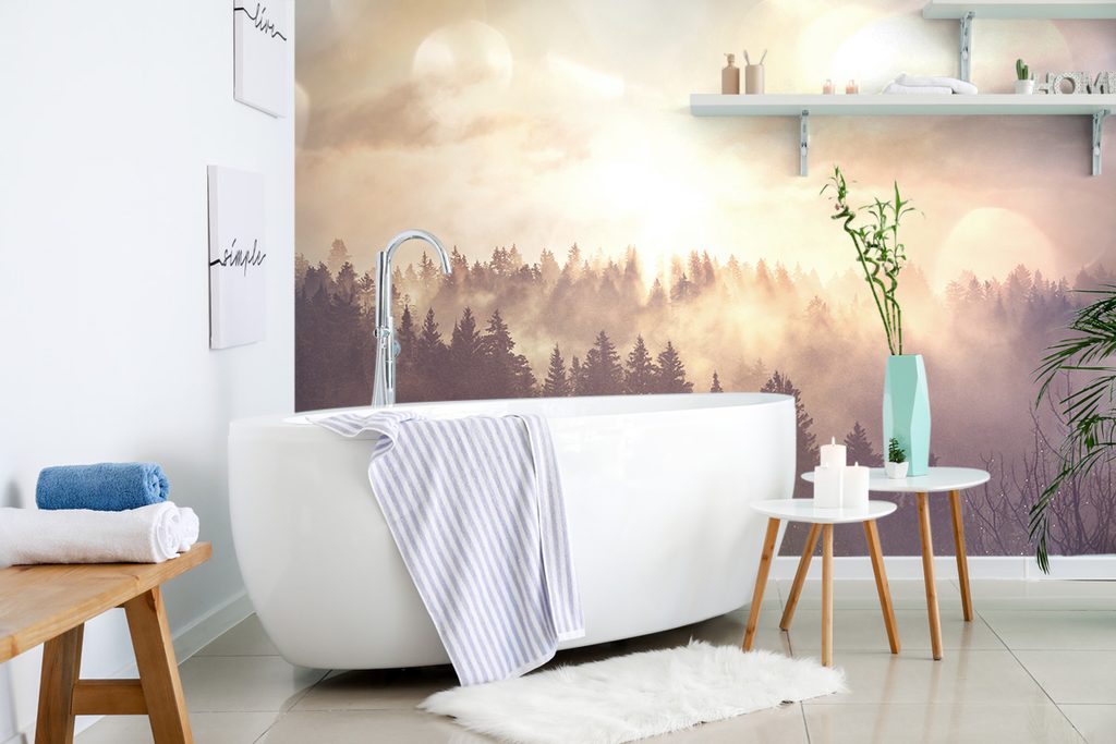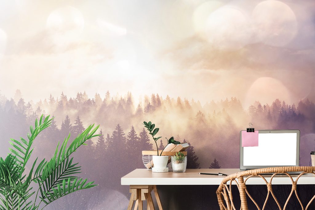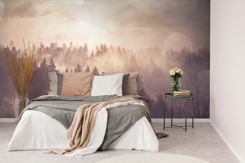 Samolepiaca fototapeta ranné lúče slnka nad lesom