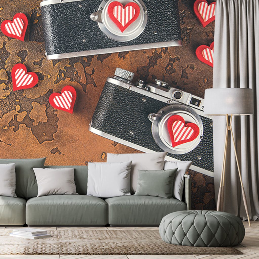 Samolepiaca fototapeta retro fotoaparáty so srdiečkami