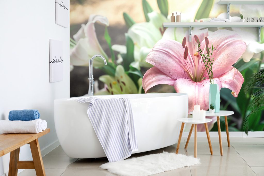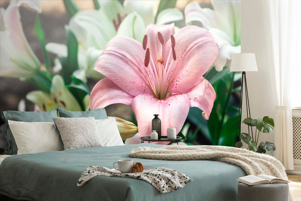 Samolepiaca fototapeta rozkvitnutá ľalia sfarbená do ružova
