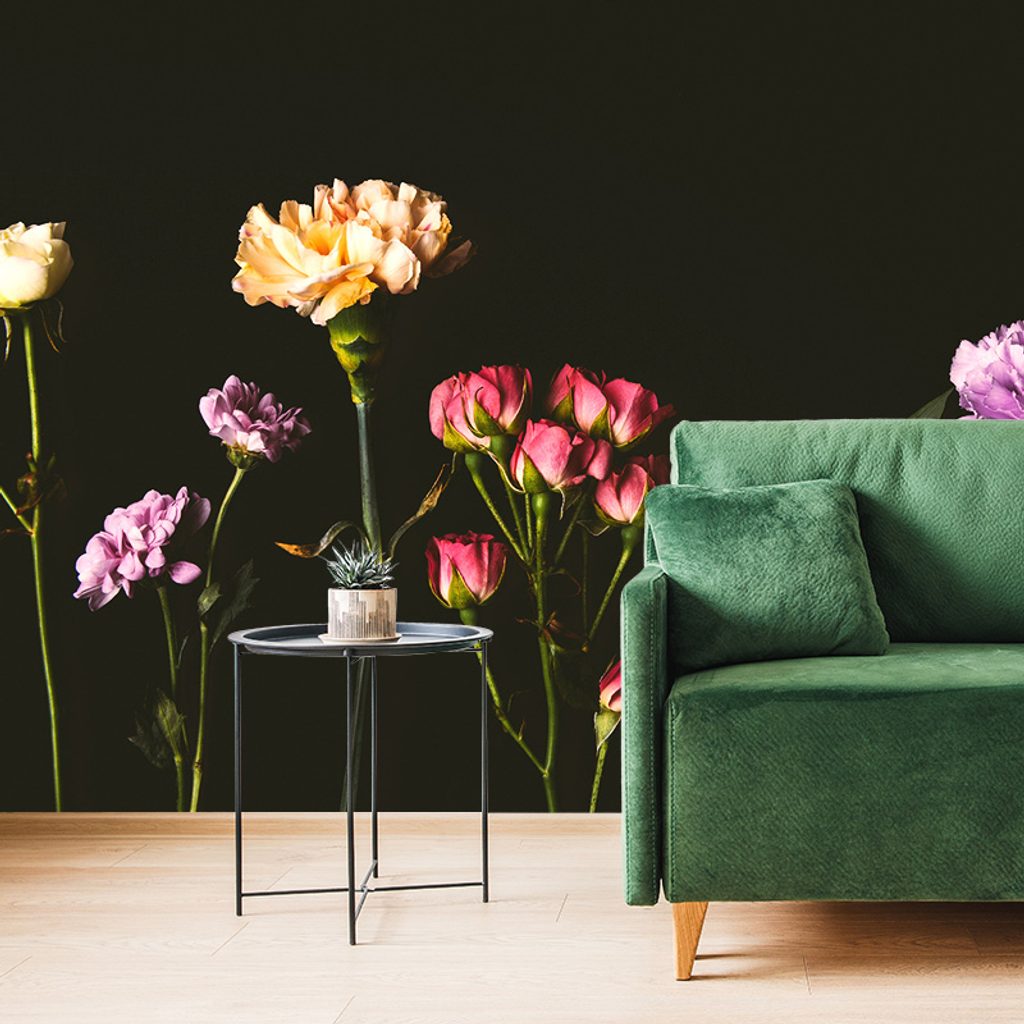 Samolepiaca fototapeta rozmanitosť kvetov na tmavom pozadí