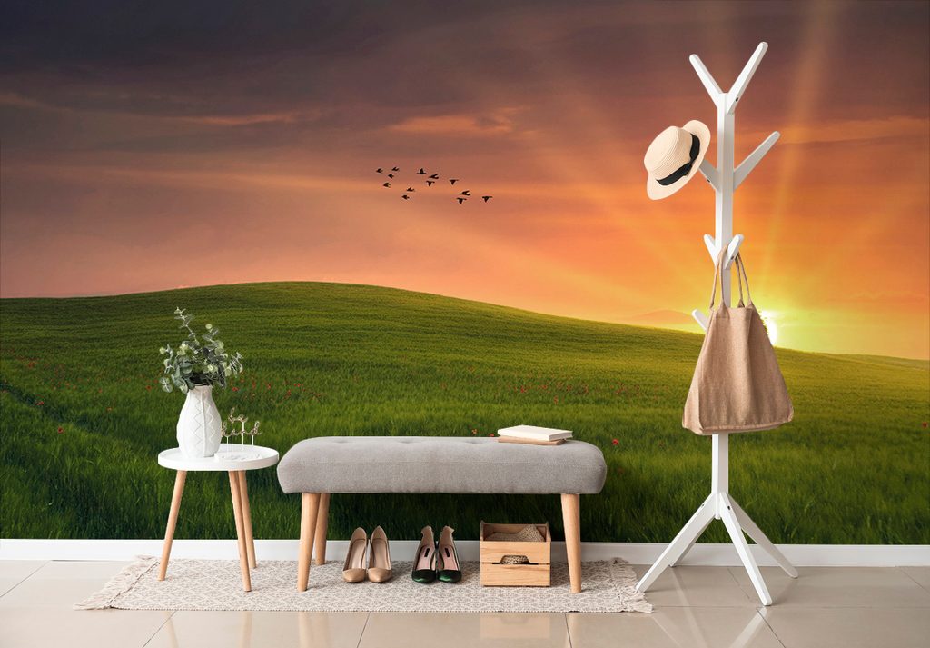 Samolepiaca fototapeta rozprávková lúka so zapadajúcim slnkom