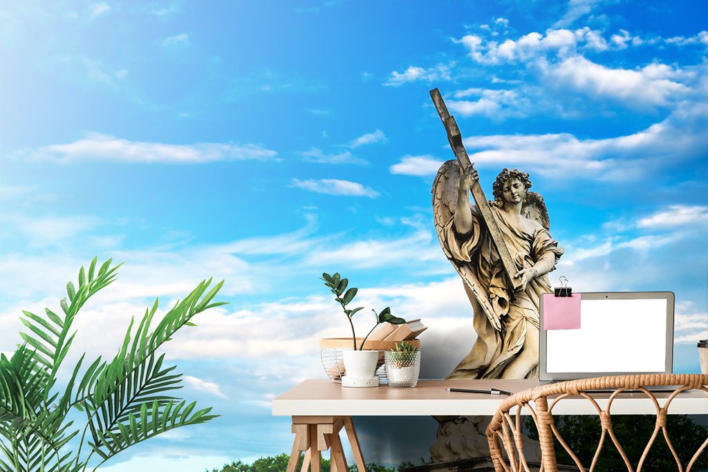 Samolepiaca fototapeta socha anjela držiaceho kríž