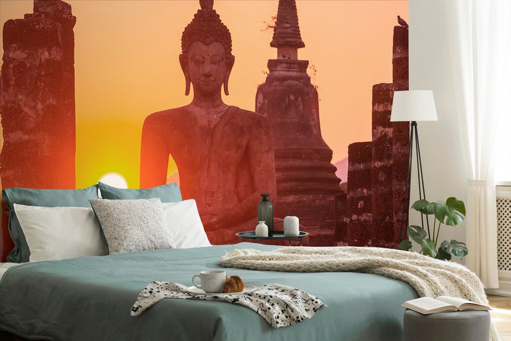 Samolepiaca fototapeta socha Budhu pri východe slnka
