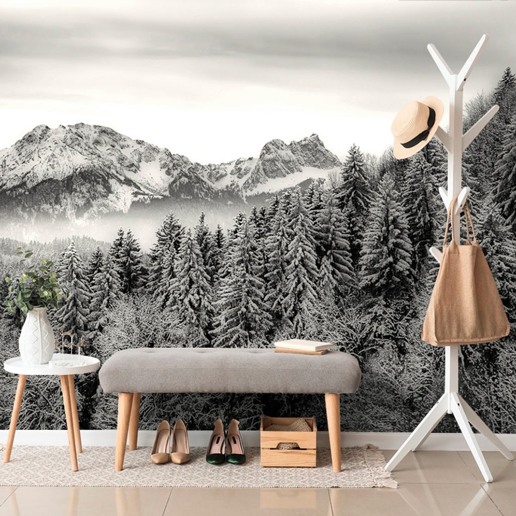 Samolepiaca fototapeta zasnežená krajina v čiernobielom prevedení