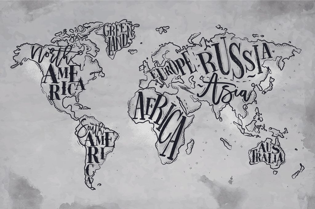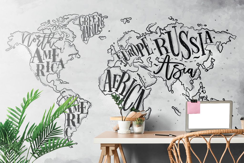 Samolepiaca tapeta abstraktná mapa celého sveta v čiernobielom prevedení